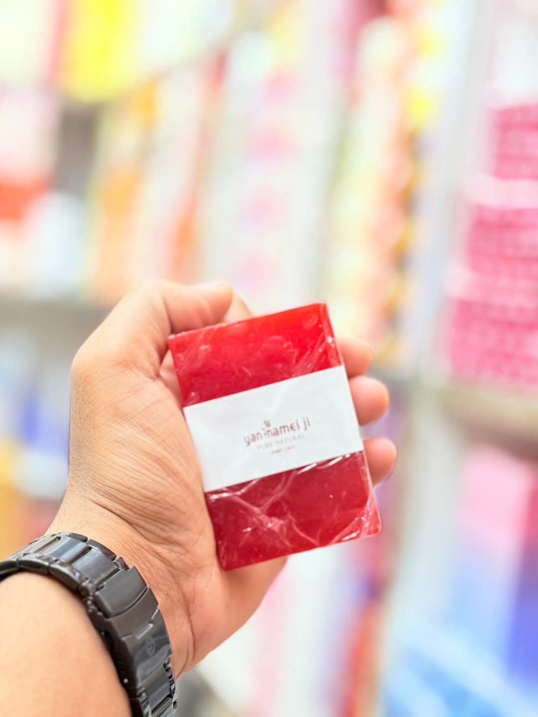 Yan Namei Ji Pomegranate Peeling Soap is a powerful exfoliating soap bar enriched with natural pomegranate extract. It helps gently remove dead skin cells, clear clogged pores, and reveal fresh, radiant skin underneath. With regular use, it can brighten dull skin, reduce dark spots, and promote a smoother and more even skin tone. Ideal for both face and body, this soap is suitable for all skin types, especially for those looking to achieve a clean, glowing complexion.