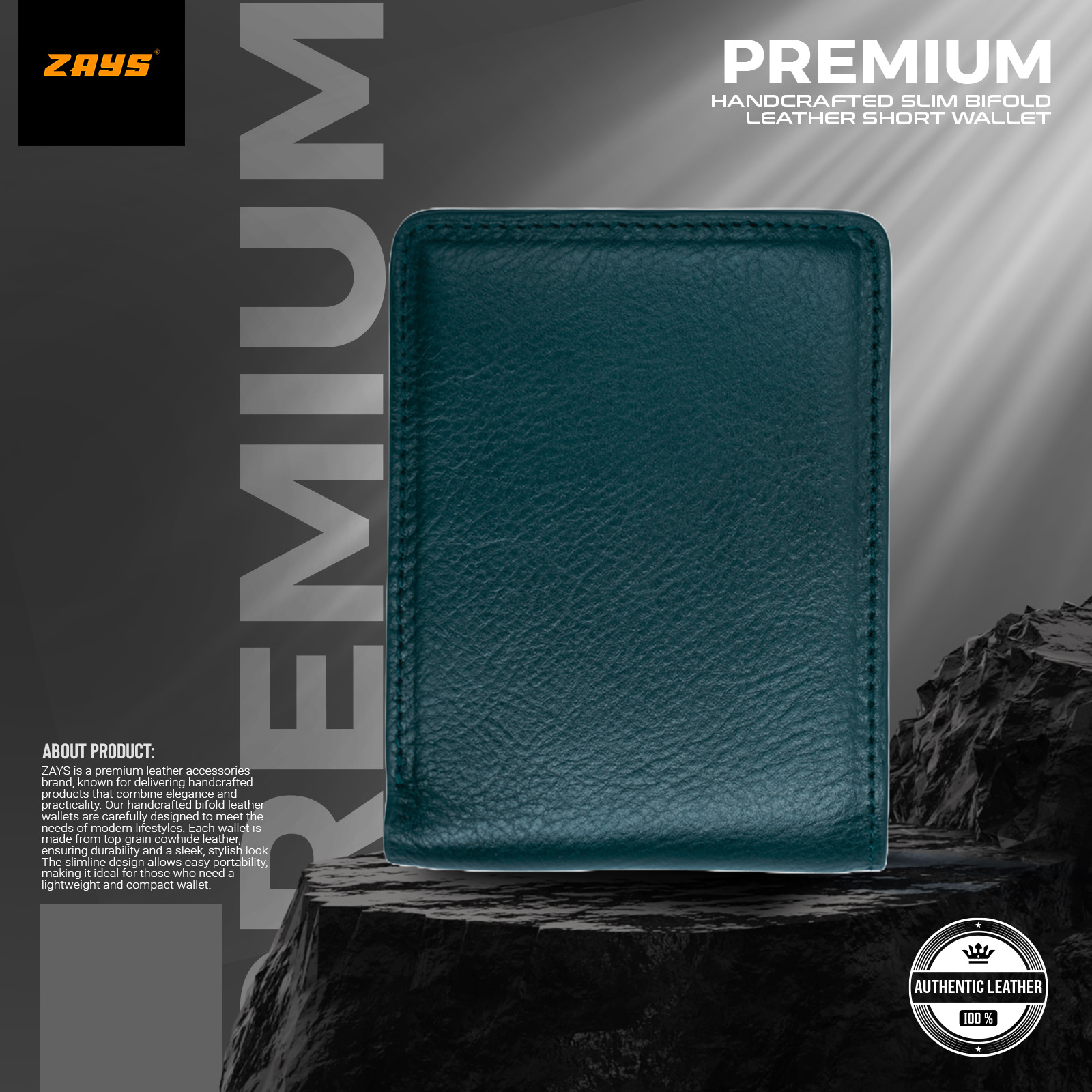 Zays Handcrafted Premium Eco-Friendly Leather Bifold Wallet – Slim, Durable & Stylish Short Wallet for Unisex – Top-Grain Leather, Compact & Lightweight (Deep green)